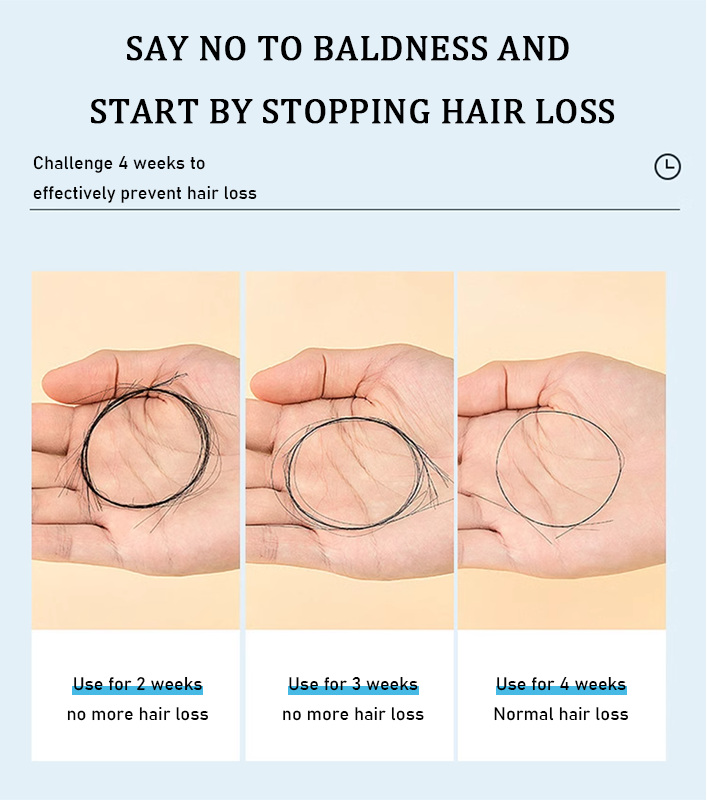 🔥Say no to hair loss, start by stopping, challenge for four weeks to effectively prevent hair loss, use for two weeks, improve hair loss for three weeks, use for four weeks without hair loss, and return to normal hair loss levels for six weeks.