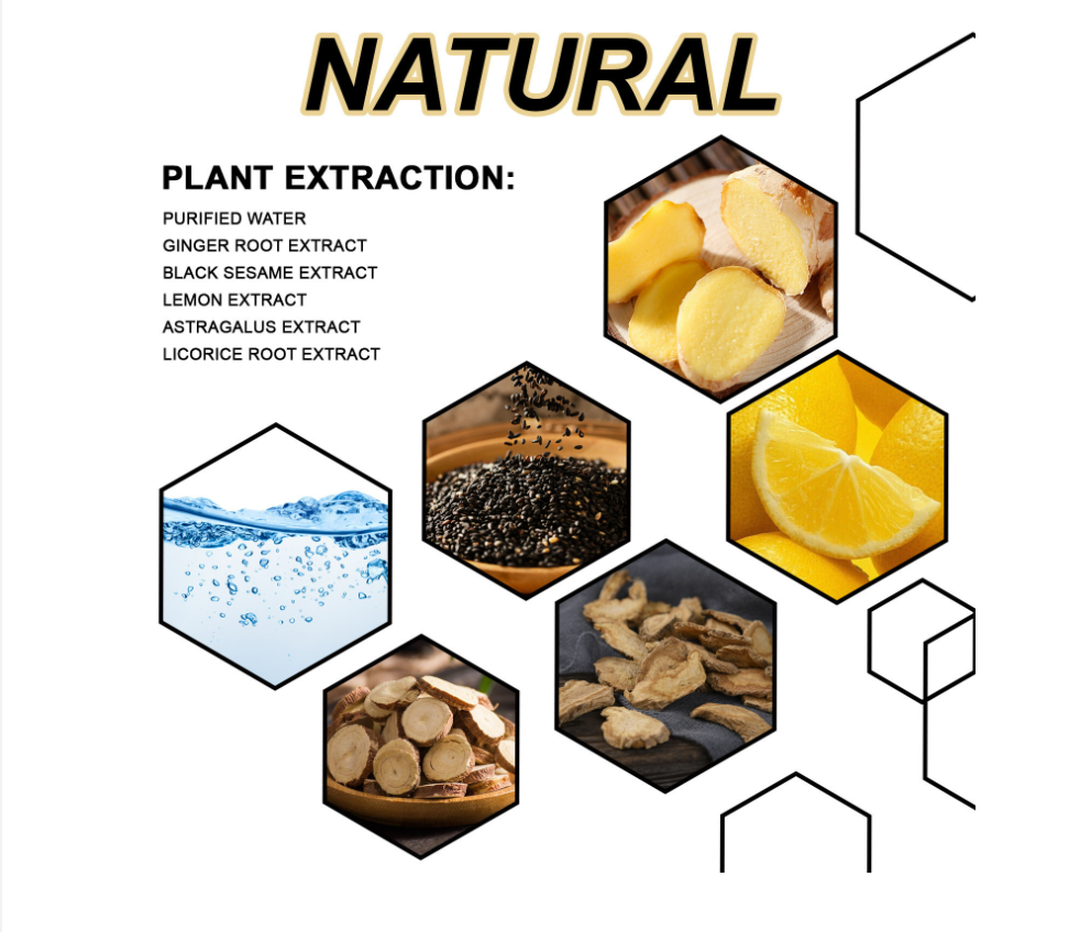 PURIFIED WATER ,GINGER ROOT EXTRACT ,BLACK SESAME EXTRACT, LEMON EXTRACTASTRAGALUS EXTRACT, LICORICE ROOT EXTRACT