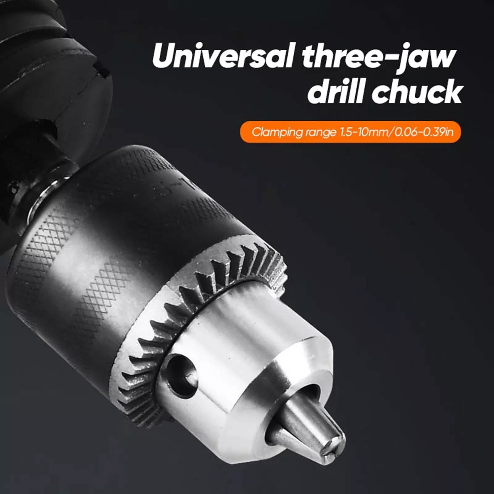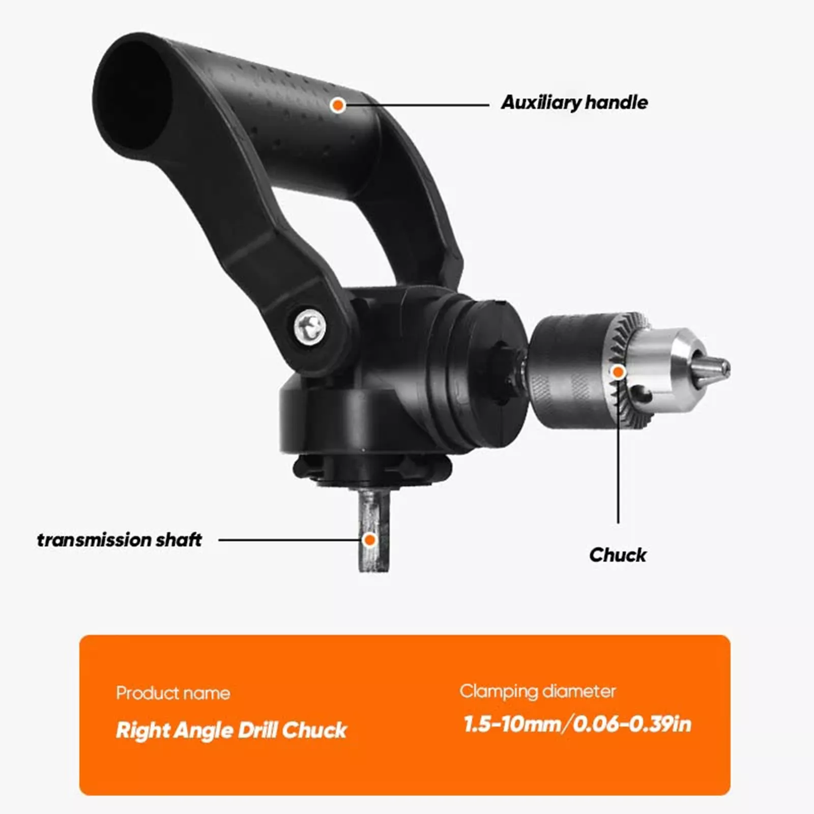 Simple to Carry: Experience seamless operation with our Right Angle Drill Attachment Adapter, featuring a 1.5-10mm clamping range, three-jaw drill chuck design, and a lightweight build that's easy to store, carry, and use.
