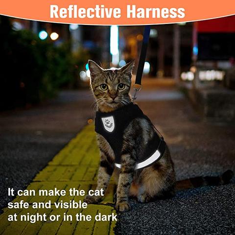 🐾SAFE AT NIGHT:  The Harness features a  reflective strip to ensure your cat is visible when walking at night.  So you can feel confident knowing you and your cat are protected on your walks.