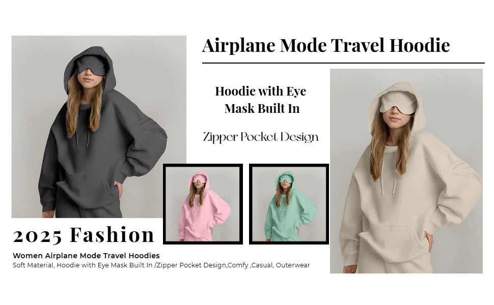 Meet the ADOURA Lounge Travel Hoodie— a stylish two-piece set designed for comfort anywhere. Featuring an oversized hooded sweatshirt with a built-in eye mask, this is perfect for lounging, sleeping, or traveling in total ease. Slip into airplane mode or stay cozy at home — comfort never looked this good.