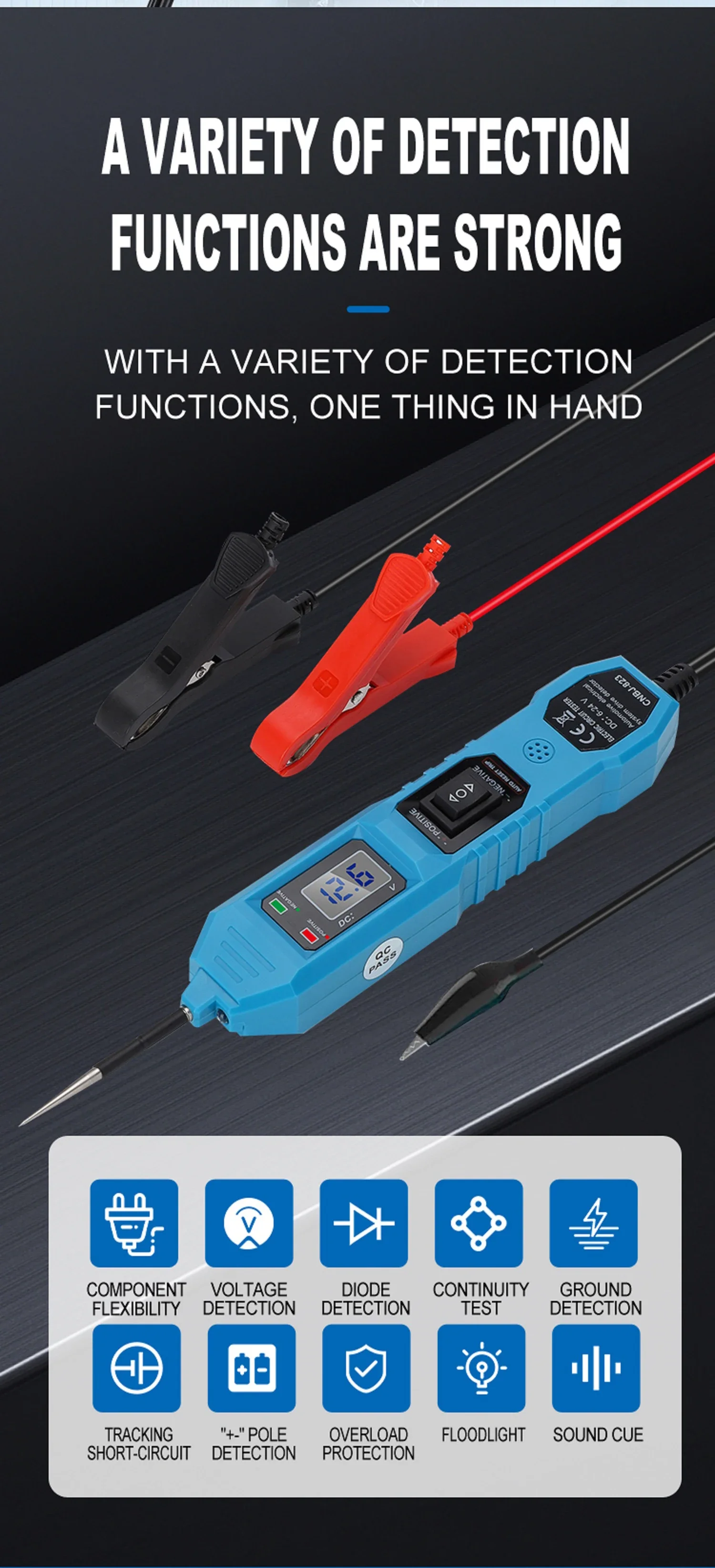 ※Versatile Functionality: The automotive electrical system diagnostic tool supports component activation, voltage detection, diode testing, continuity testing, ground detection, short circuit tracking, and positive/negative polarity detection. With its wide ranges of functions, it is a highly practical tool for automotive professionals.