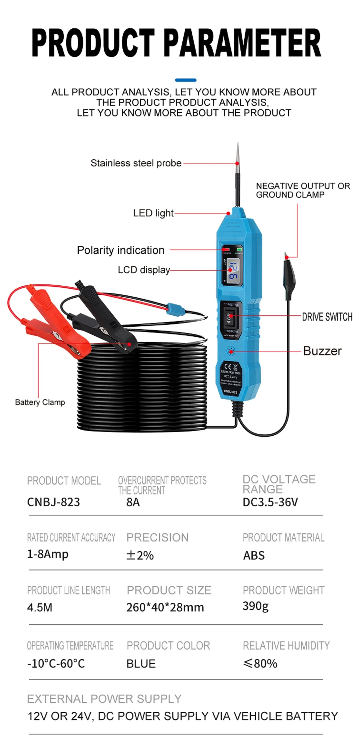 ⭐Can Be Used To Test Battery Voltage Value, Voltage Polarity, Continuity, Check Lights, Check Motors, Track And Locate Short Circuits, Test Ground Contact For Non-Illuminating Light Faults Extra-Long Test Cable.