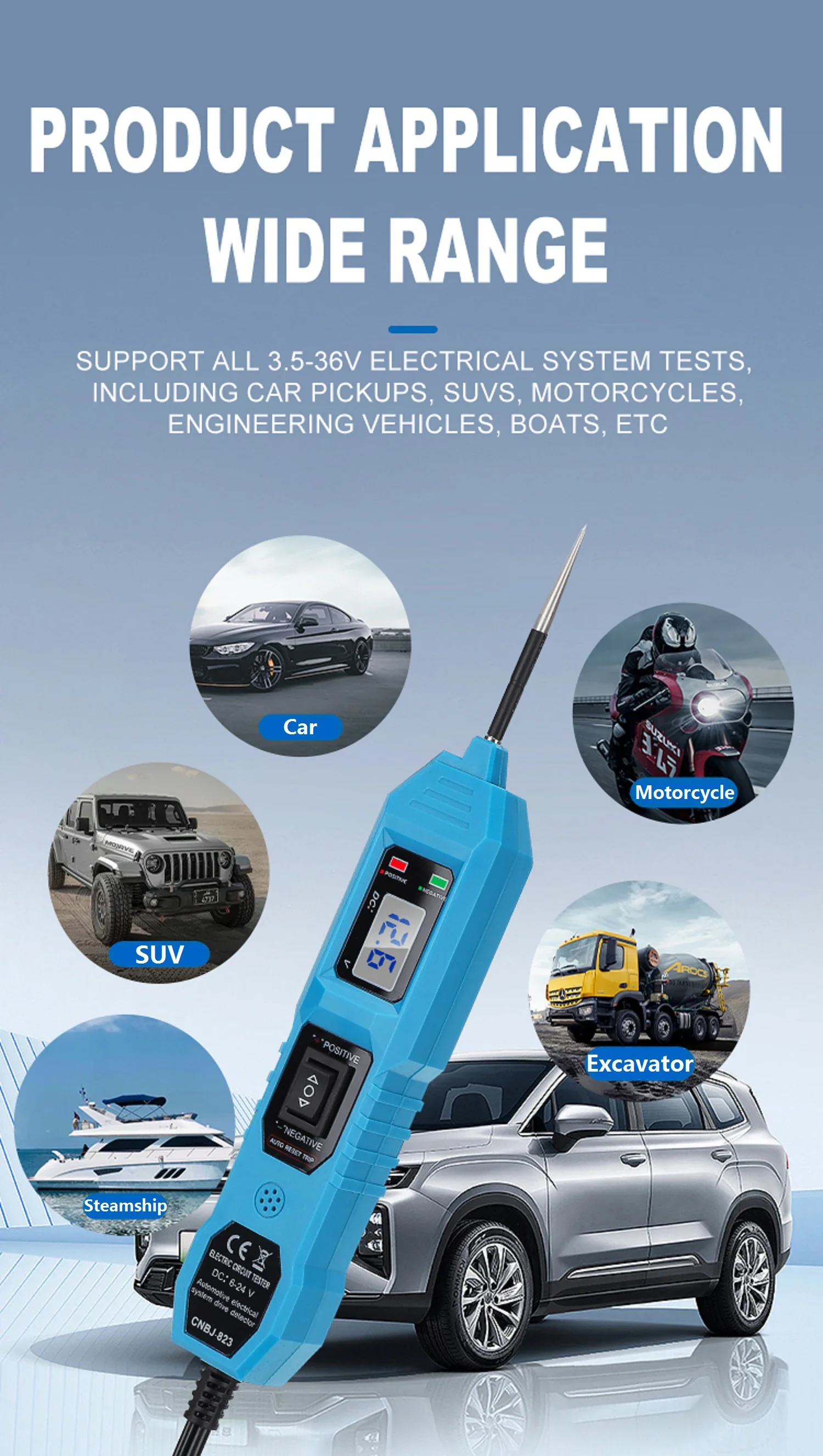 ※Wide Compatibility: It is suitable for testing all 3.5V-36V electrical systems, including car, truck, SUV, motorcycle, construction vehicle, and boat. It can directly connect to the car battery for power supply. With its broad application ranges, it is an indispensable tool for automotive professionals.
