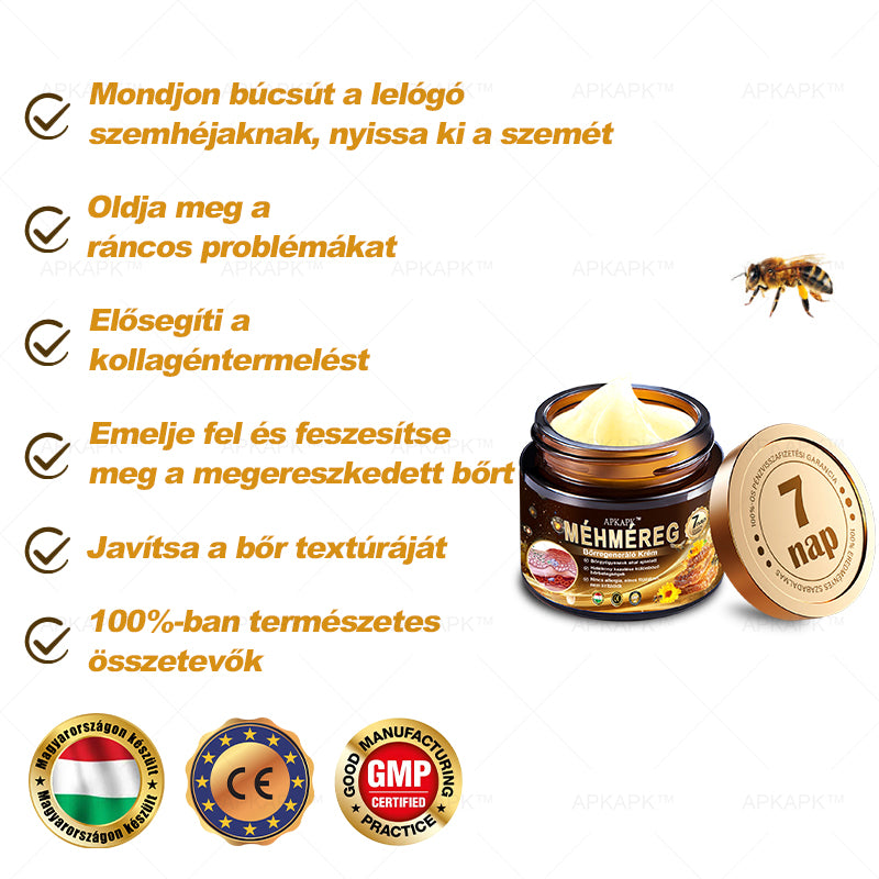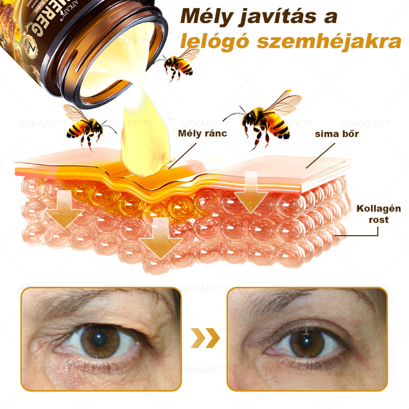 APRKAРК  ™ Bee Venom Comprehensive Cream  combines cutting-edge technology with unique ingredients to  specifically target and deeply restore sagging eyelids  . Unlike typical products on the market,  APKAPK™  not only stimulates collagen production to improve the elasticity of the delicate skin around the eyes, but also uses bee venom peptides to accurately mimic the effects of Botox. This relaxes the muscles around the eyes and lifts sagging eyelids. The unique formula penetrates deep into the skin, promotes blood circulation, and together with the deeply hydrating effect of hyaluronic acid, ensures that the skin around the eyes looks plump and full. This effectively reduces sagging eyelids and gives your eyes a youthful, firm look. Choose  APKAPK™ to experience true skincare innovation and say goodbye to sagging eyelids completely.