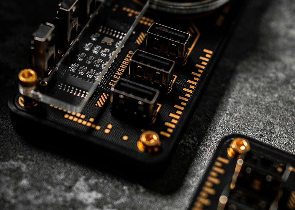 Cyberpunk geek style USB hub with adjustable volume and colorful lights