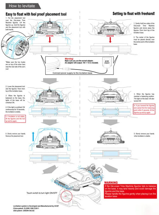 Magnetic floating base with lighting function An AC/DC power adapter is included in the package.