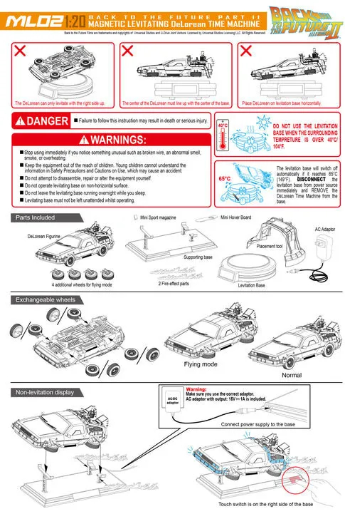 "Utak? Where are we going? We don't need roads." You'll be sure to make your sci-fi lover green with envy when you reveal this 1:24 scale DeLorean magnetic levitating time machine. Doc Brown's iconic time-traveling DeLorean has been crafted with meticulous attention to detail and features 10 luminous elements