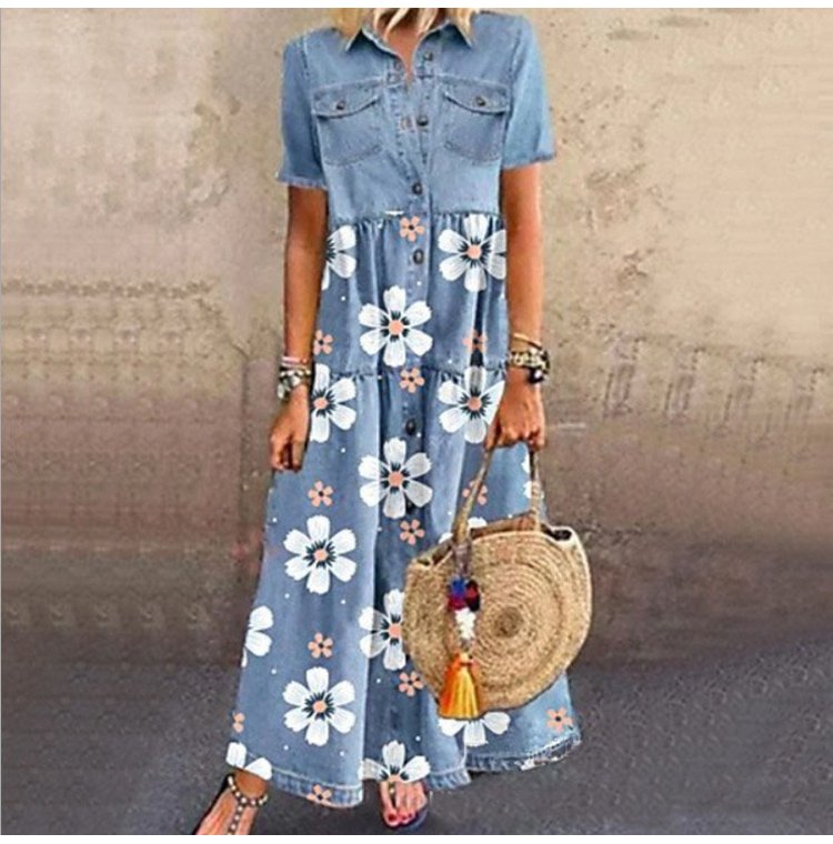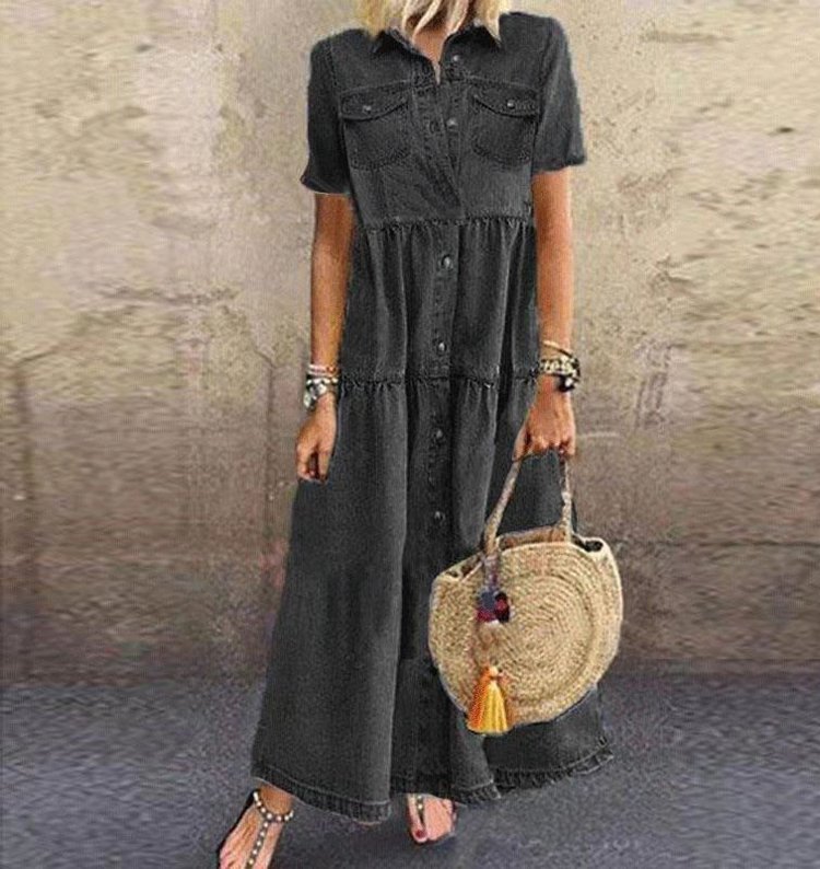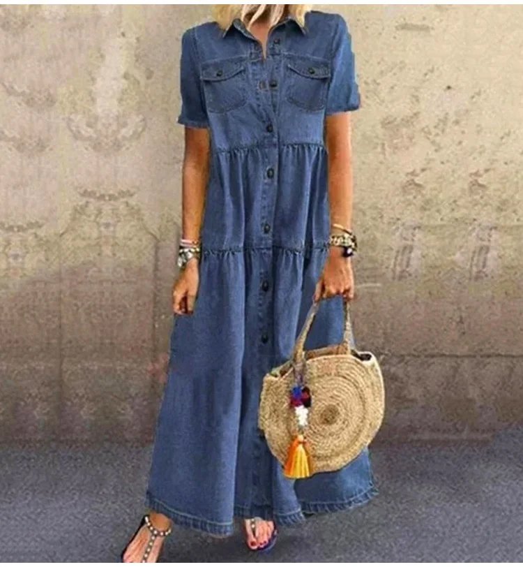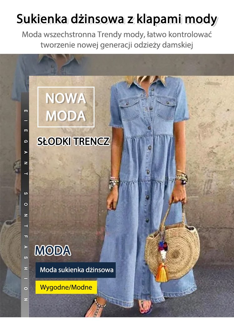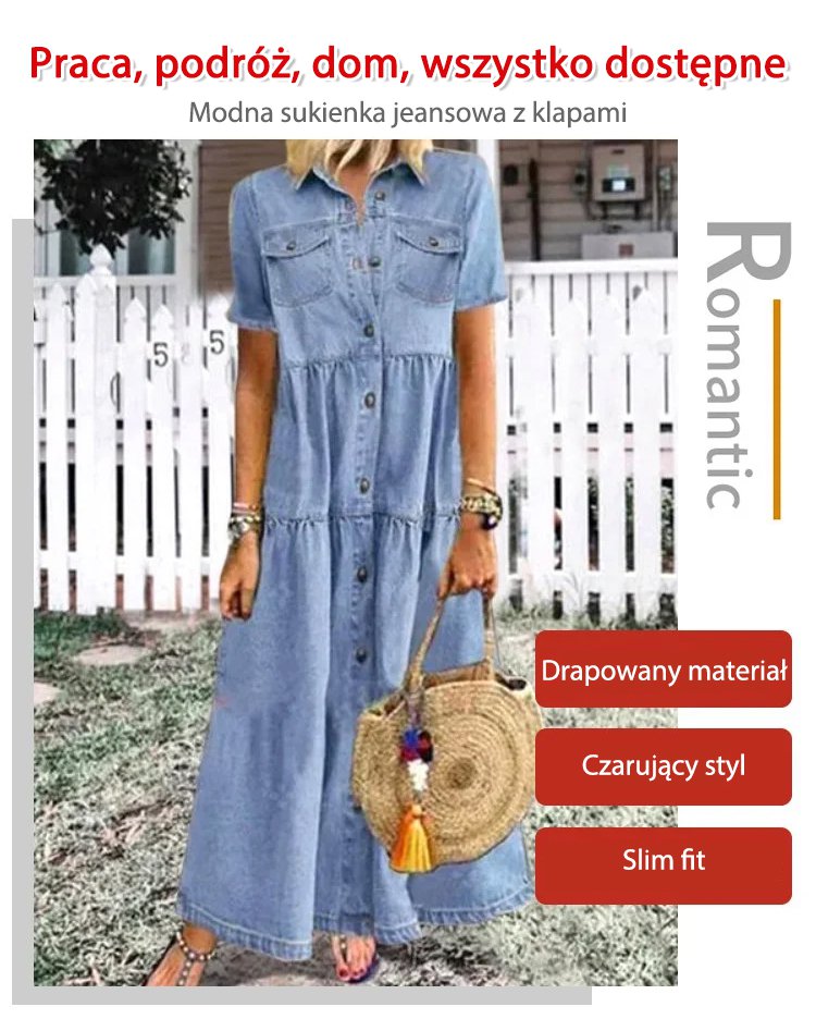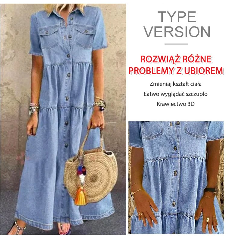 Denimowa sukienka z wieloma guzikami