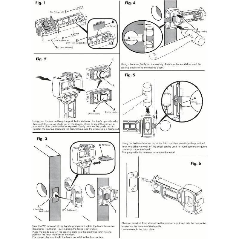 With combined scoring and chiseling functions, latch mortising takes just a few quick strikes of a hammer. The reversible scoring head handles both square and round plates, reducing tool changes and simplifying your workflow. Even first-time users can create clean, repeatable mortises in minutes by following the included illustrated instructions.