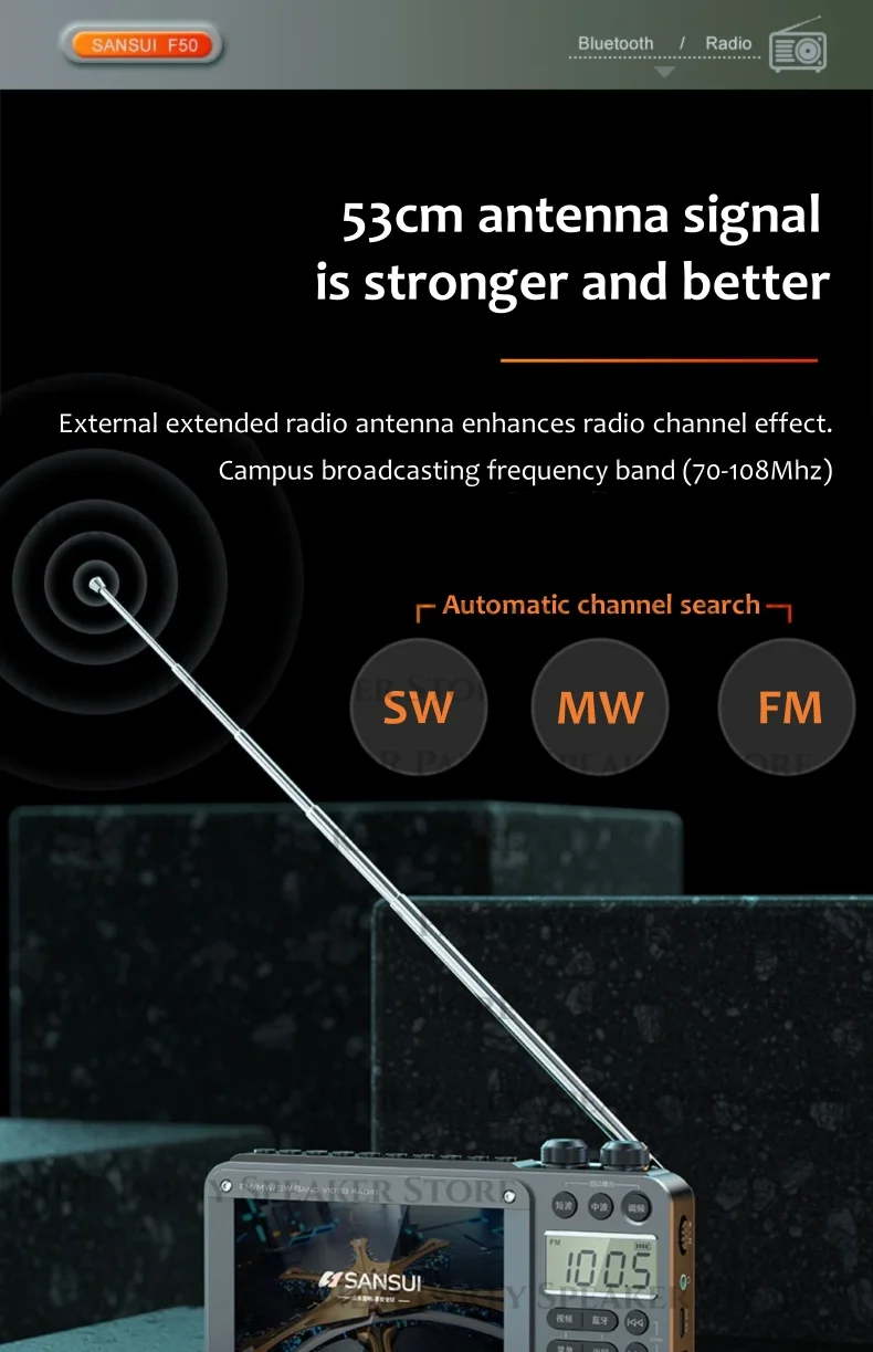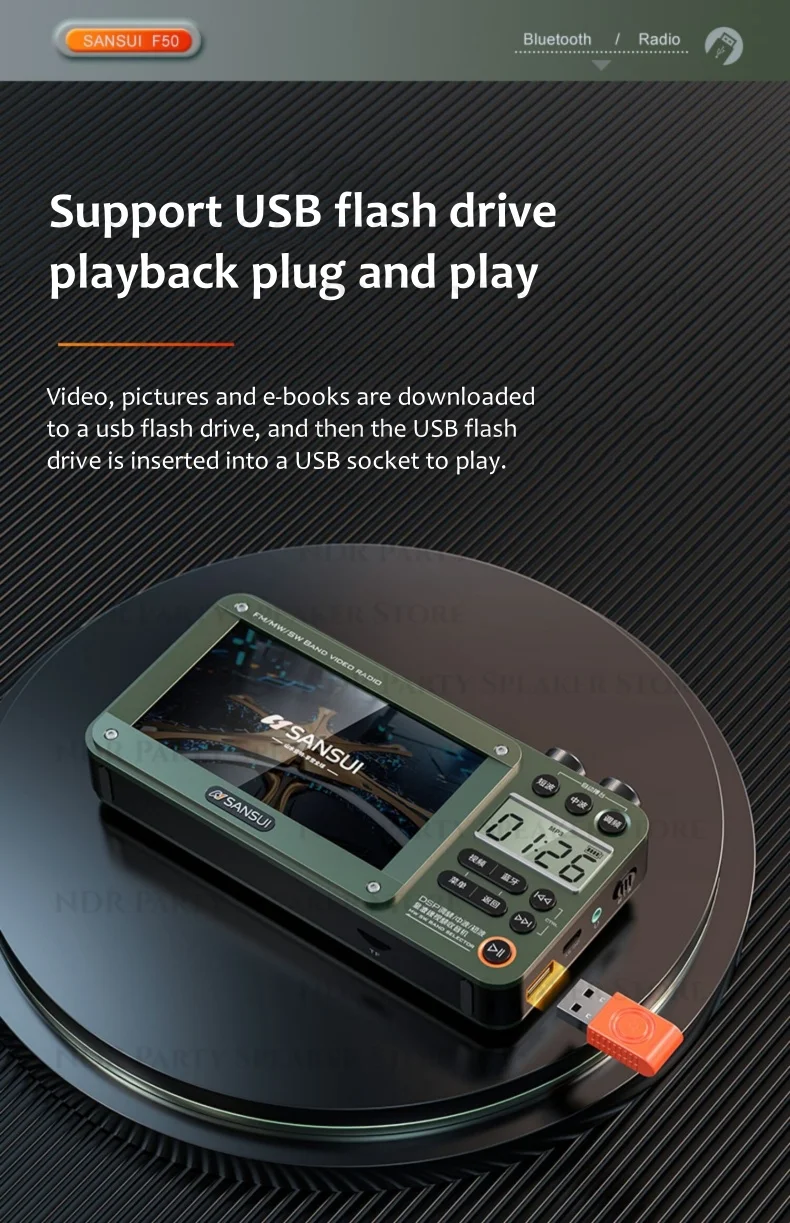 F50 Multi-band Receiver Portable Old-fashioned Rechargeable Radio Semiconductor Video Player Outdoors Wireless Bluetooth Speaker