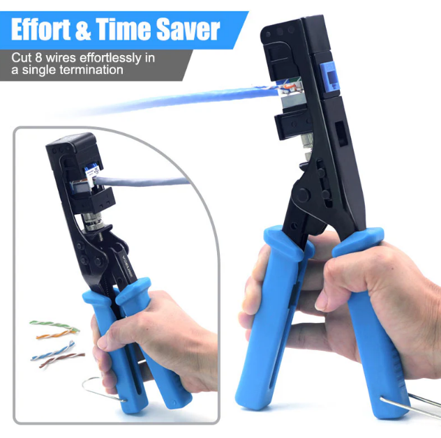 Our punch-down tool revolutionizes the keystone jack punching process, maximizing your time efficiency. The innovative design allows it to cut and punch down eight wires simultaneously, making it an invaluable tool for large-scale network installation.