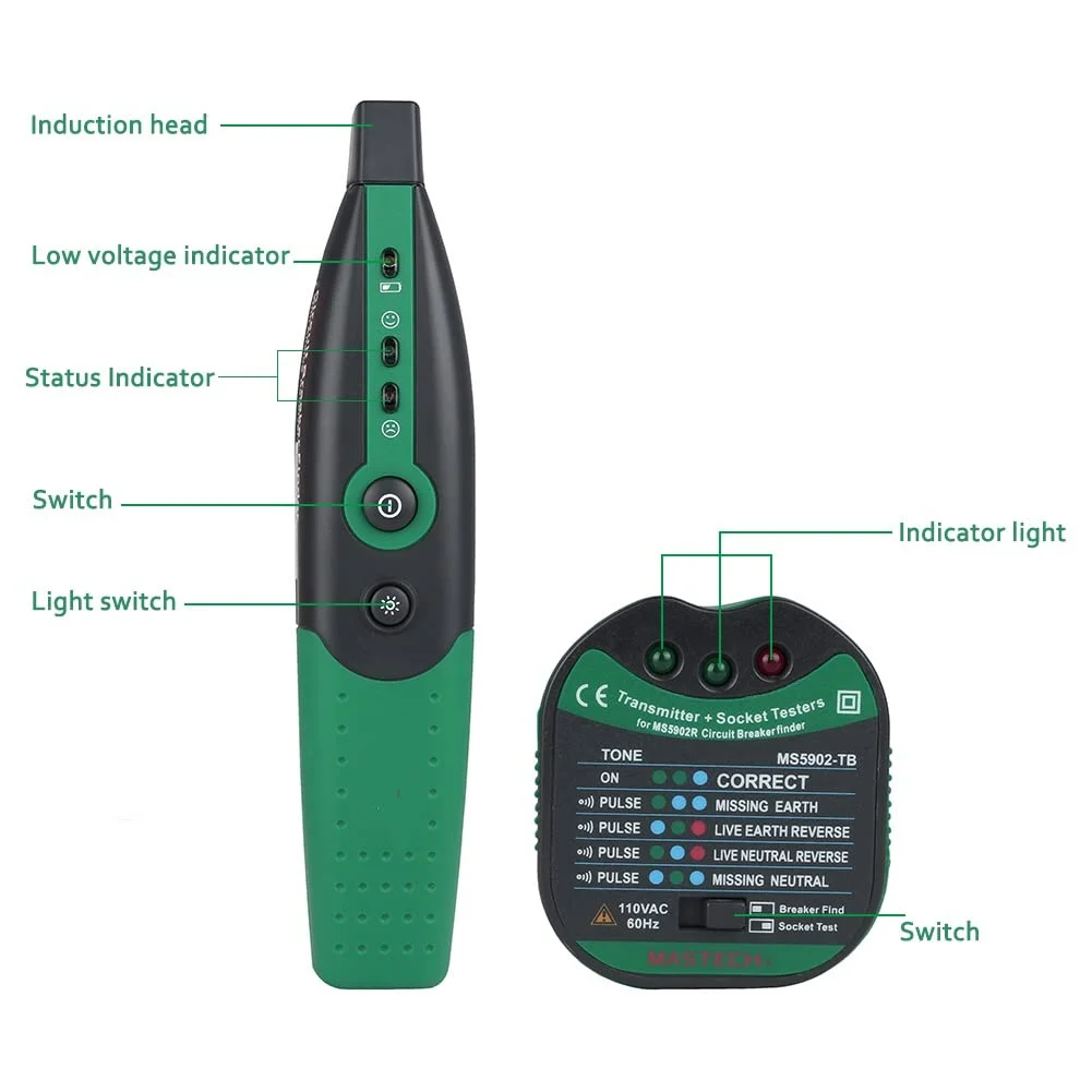 Breaker Finder: MS5902 socket tester instructions / fully automatic circuit breaker finder. The task of the Circuit Breaker Finder / Socket Tester (MS5902) is to find the right circuit breaker or the right fuse and test socket. You no longer have to worry about finding the right circuit breaker that powers an AC outlet or light.