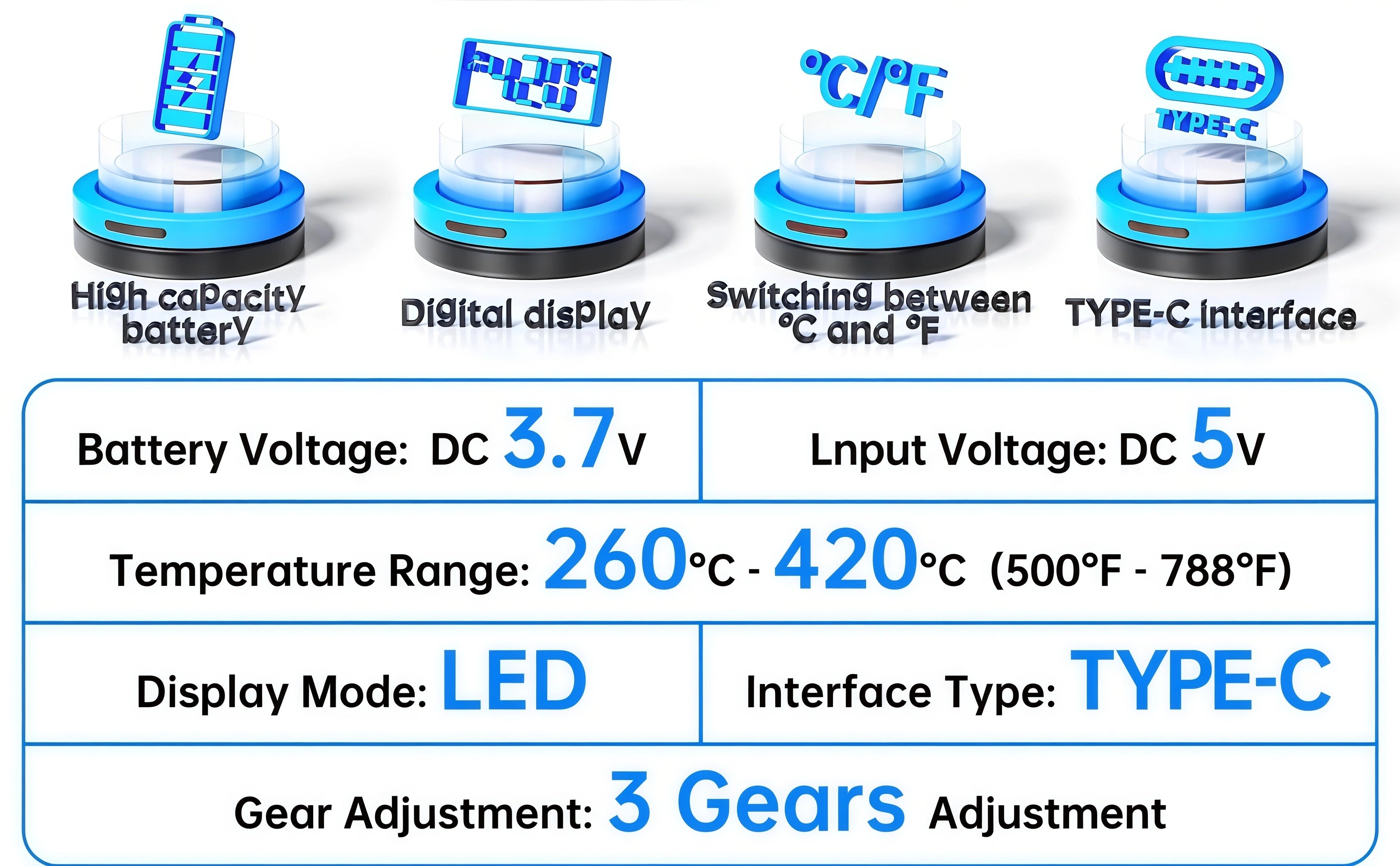 • Worry free battery life: The USB soldering iron kit uses a large capacity battery, which can work continuously for 20 minutes after being fully charged, meeting your normal work needs.