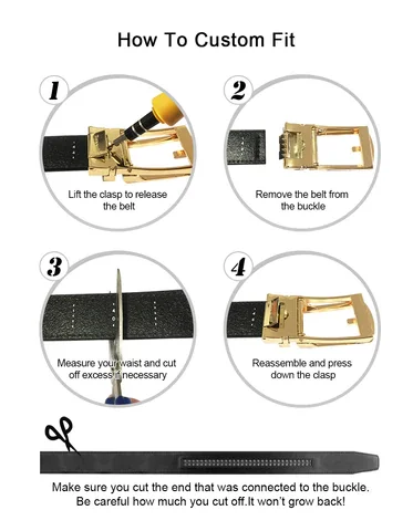 Exquisite workmanship - We pay more attention to details. Select genuine leather with excellent quality to make the belt exquisitely. The logo is printed both on the buckle and belt and looks very fashionable. The quick-release lever lets the belt slide on, off, or adjust with ease.