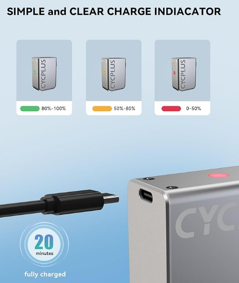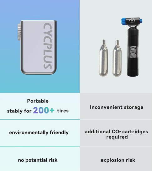 【Rechargeable Battery】: It takes only 20 minutes to fully charge. Once fully charged, it can inflate two 700*25C tires from 0 to 80 Psi.