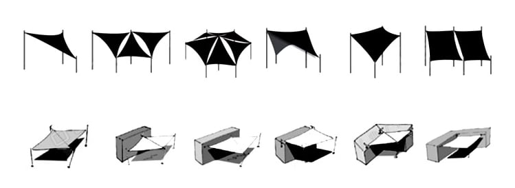 • Sunshade sails have curved sides to enhance pull strength and prevent drooping. (Middle-center of the sun shade will be shorter in width due to curves)