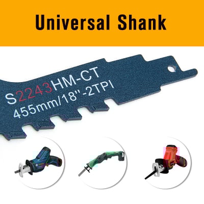 The universal shank will fit most brand of recip saw. The blade can also be used while rotated 180° in the chuck. This will allow the user to cut upwards or downwards, depending on the situation.