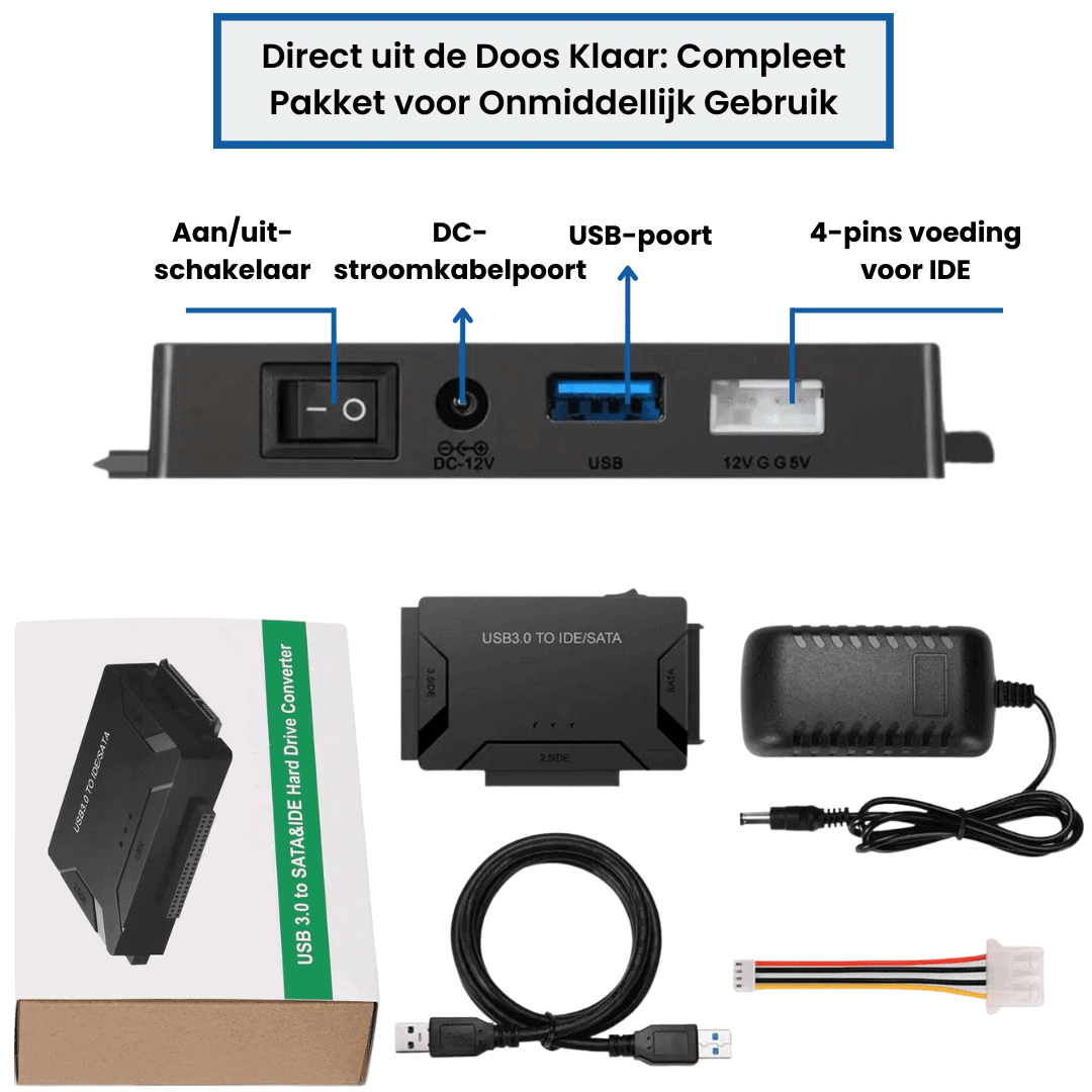 • Werkt met alle harde schijven – Ondersteunt zowel SATA als IDE-schijven tot 6TB. Laptops, telefoons, DVD, CD, NAS, etc.