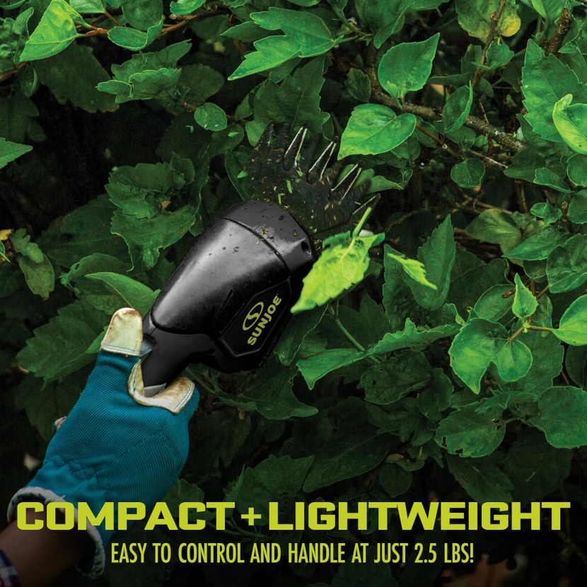 Includes interchangeable 4-inch shear blade & 6-inch hedge trimmer blade