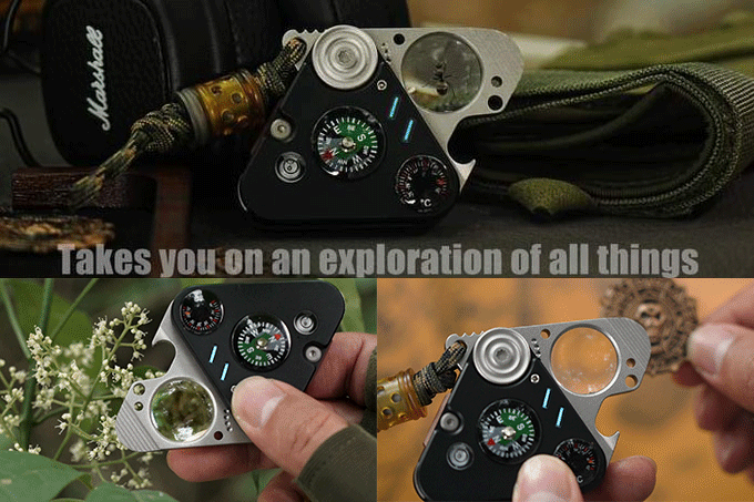 In short, Ti-Scout is a compass, thermometer, level, magnifying glass, bottle opener, flint, crowbar, stress relief toy and other functions in one. It's time to revisit the industrial beauty of metal and machinery.