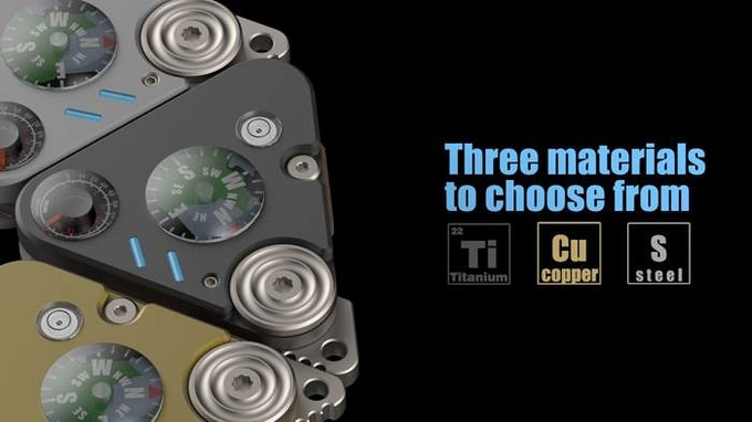 The main body of Ti-Scout is made of titanium/special stainless steel/brass, achieving a perfect combination of strength and functionality. Ti-Scout is designed based on the "triangle rule" and is a super-dimensional outdoor survival tool that combines practicality, geometric aesthetics, and decompression fun.