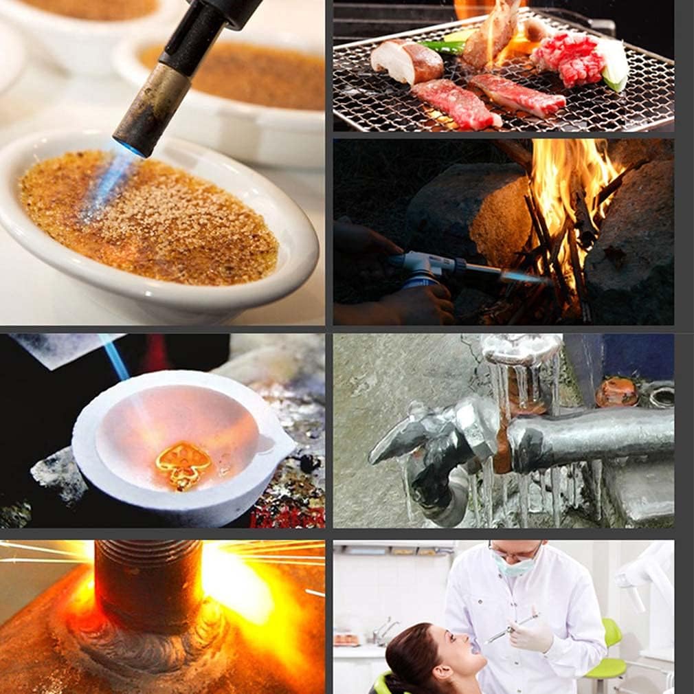 Multi-purpose lighter: this adjustable jet butane lighter can be easily lit and is perfect as a candle lighter, barbecue lighter, camping lighter, also as a camping lighter, fireworks lighter, ideal for indoor and outdoor use. Use high-quality butane to fill to maintain a strong flame and prevent clogging of the port.