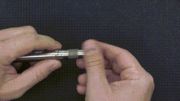 Con solo un ligero tirón, el bolígrafo se pliega por la mitad, dejando al descubierto el gatillo.